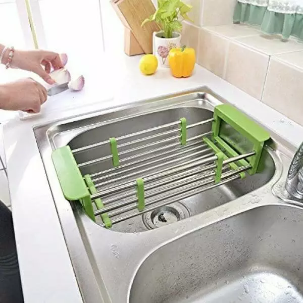 Сушилка для посуды настольная складная над раковиной многофункциональная нержавейка Kitchen Drain Shelf Rack. Цвет: зеленый