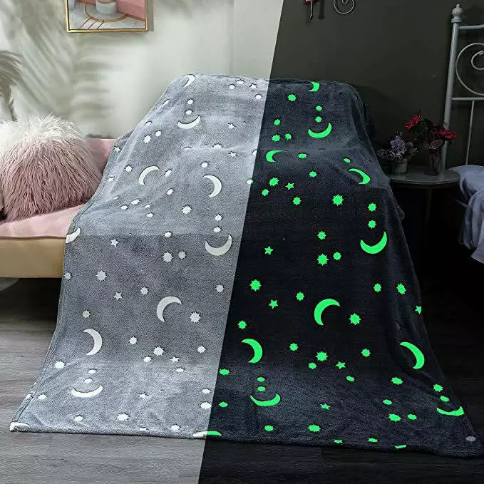 Плед светится в темноте, гипоаллергенный, мягкий и очень приятный на ощупь. Звезды загораются в темноте благодаря специальному материалу. Супер мягкий и удобный плед выполнен из качественной микрофибры. Стильный дизайн подойдёт под любой декор, а также в качестве детского ночника