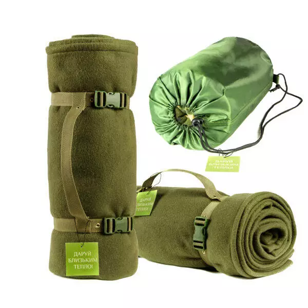 Тактический флисовый плед 150х200см – одеяло для военных с чехлом. Цвет: хаки