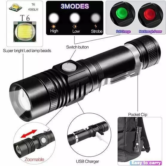 - Источник света: светодиод CREE T6;