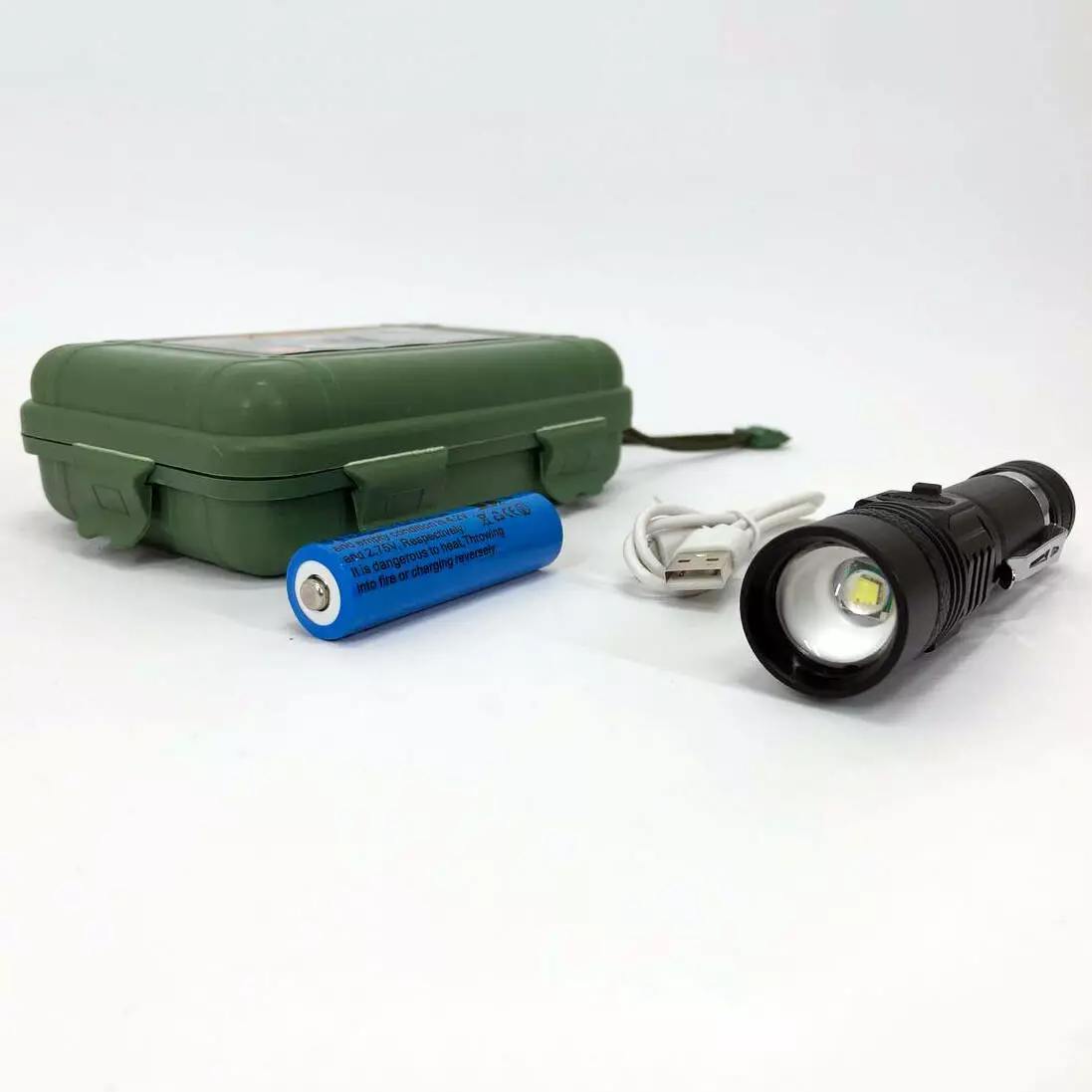 Тактический фонарь Bailong BL-518-T6 3 режима работы zoom з/у microUSB кейс, карманный мини фонарь
