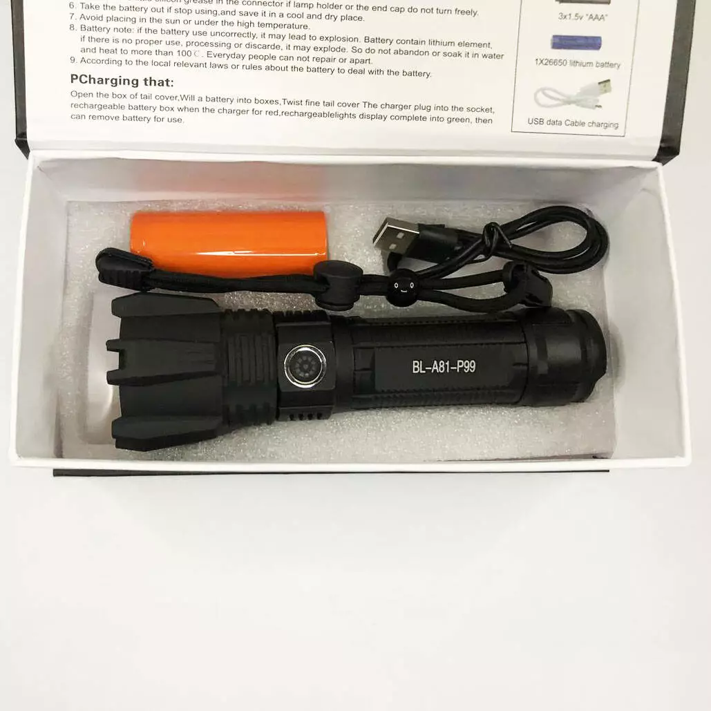 Фонарь BL-A81-P99- это высококачественный ударопрочный фонарь оснащенный зумом, с 3-мя режимами работы, и мощным светодиодом нового поколения Р99. Многофункциональный тактический фонарик — идеальный компаньон для путешествий, отдыха, рыбалки. Тактический фонарик обладает также функцией ZOOM, которая увеличивает площадь освещенности за счет рассеивания луча через линзу. Многофункциональный, практичный и компактный ручной фонарик.