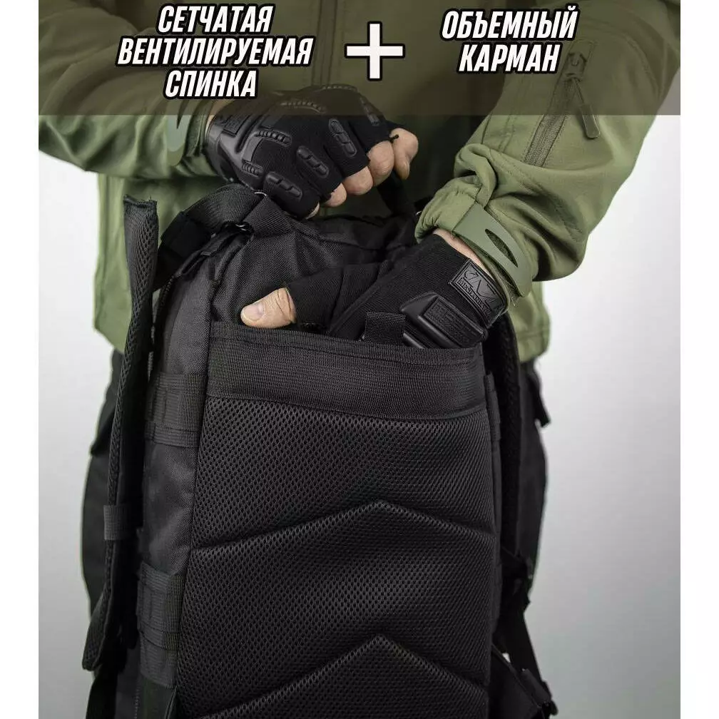 Тактический рюкзак Tactic 1000D для военных, охоты, рыбалки, походов, путешествий и спорта. Цвет: черный