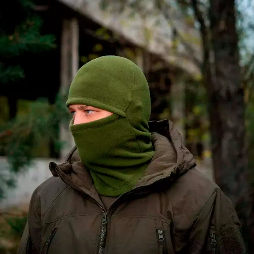Теплая флисовая балаклава зима, тактическая шапка бафф хаки мультикам