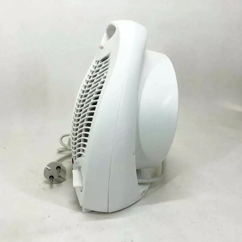 Обогреватель компактный, размер 25 х 24 х 12 см, но благодаря своей мощности может быстро нагреть воздух в помещении площадью до 15-20 кв. Работает в режиме нагрева 2000 Вт, управление механическое. В качестве нагревательного элемента установлена электрическая спираль. Важно, что летом можно использовать устройство как обычный вентилятор.