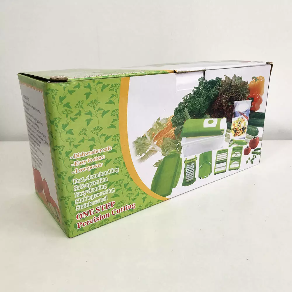 В комплекте Найсер Дайсер Плюс 14 предметов, поэтому Вам больше ничего не понадобится на Вашей кухне. Кроме разнообразных режущих лезвий, Вы также получаете инструмент для удаления шелухи, герметичную крышку, которая сохраняет пищу свежей, режущее лезвие V-образной формы, терку и книгу рецептов.