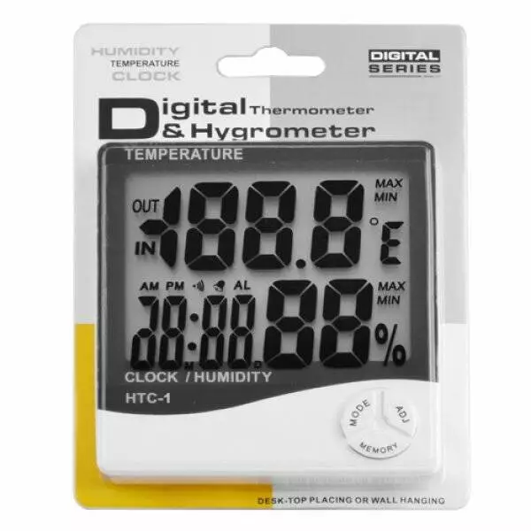 Качественный цифровой гигрометр, термометр, часы будильник для измерения уровня относительной влажности воздуха и температуры воздуха в помещениях. Идеален для применения в детских комнатах и в других помещениях, требующих повышенного внимания к уровню влажности.