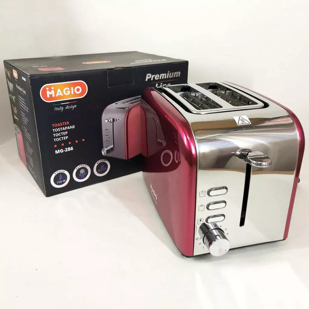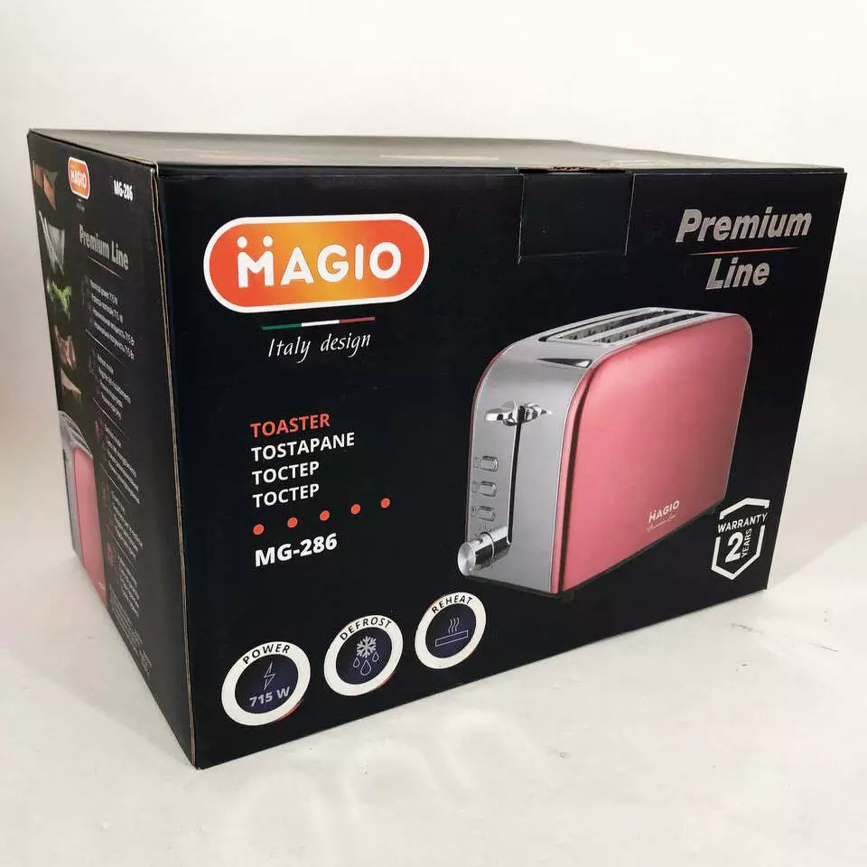 Стильный тостер Magio MG-286 не только приготовит прекрасный тост на завтрак, но и станет оригинальным акцентом в интерьере Вашей кухни. Тостер имеет два отделения для хлеба и поддон для крошек, что делает очистку прибора ещё более быстрой и лёгкой.