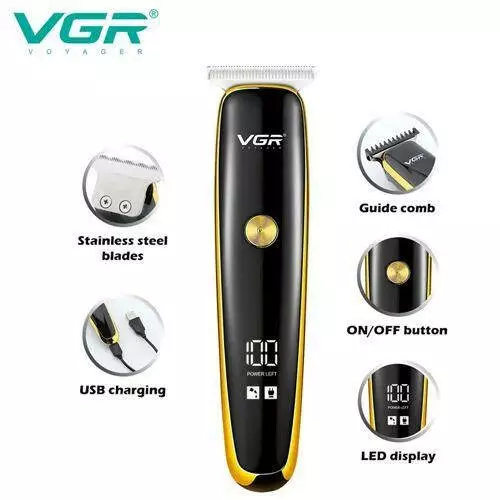 Триммер для стрижки волос и бороды VGR V-966 LED Display, машинка мужская для бритья. Цвет: золотой