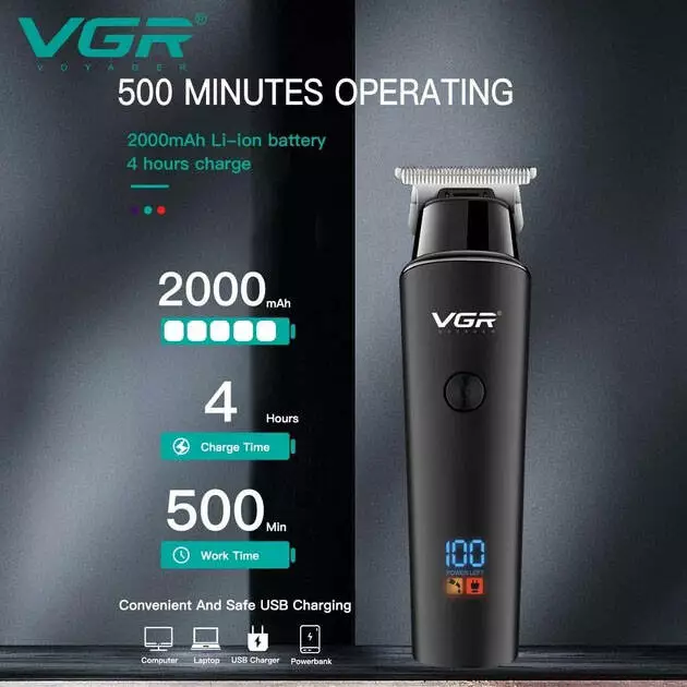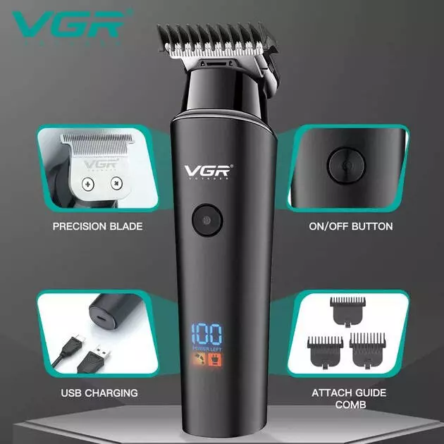 Триммер для волос VGR V-937, с USB-кабелем для зарядки, светодиодным дисплеем, 3 насадками