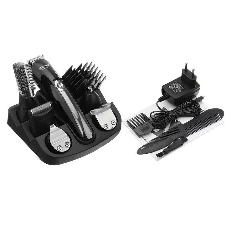Набор для стрижки волос Kemei, представляет собой универсальную машинку для стрижки с 11 насадками. Две насадки для стрижки ширины, насадки регулировки длины 3-12 мм, триммер для носа, дизайнерский триммер, узкий триммер, сеточная бритва, насадка 3-4,5 мм. Лезвия из нержавеющей стали, встроенный аккумулятор и индикатор заряда. Отличный набор на все случаи жизни, вместо нескольких приборов Вам достаточно иметь один такой.