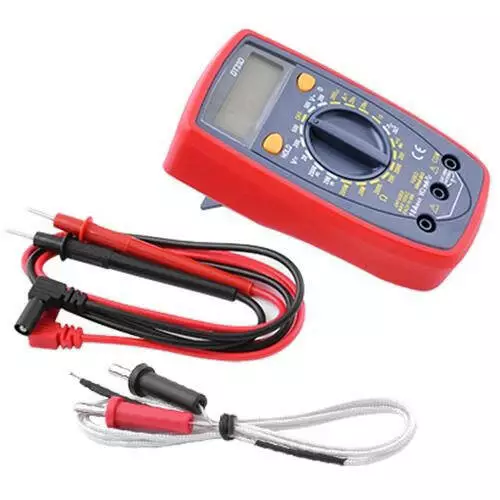 Карманный мультиметр измеряет постоянный ток, постоянное и переменное напряжение, сопротивление, температуру, а также используется для прозвонки цепи и тестирования диодов.