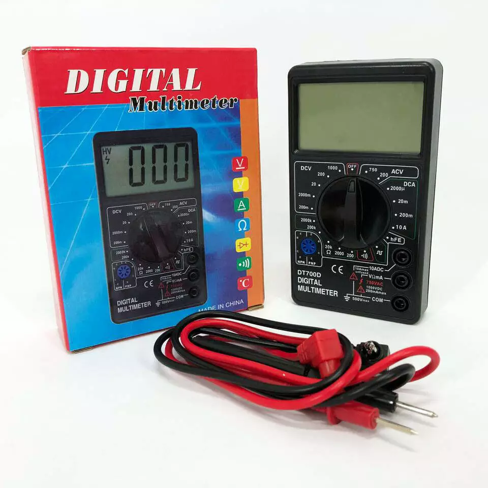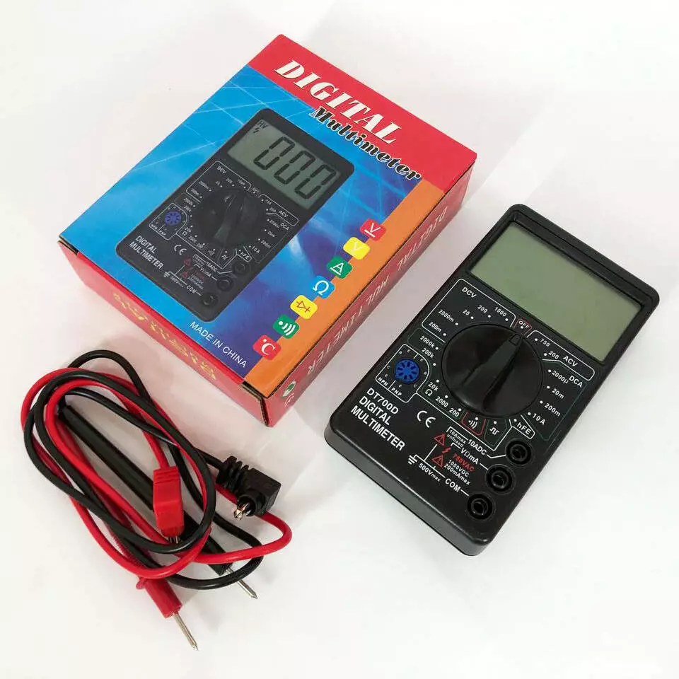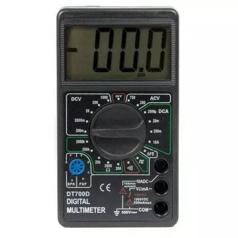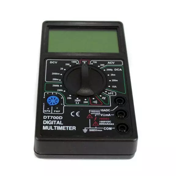 Мультиметр DT700D предназначен для измерения тока, напряжения, сопротивления, параметров диодов и транзисторов. Прибор многофункционален, портативен, питается от батарейки, удобен при починке электроцепи автомобиля, лабораторных измерений и т.д.