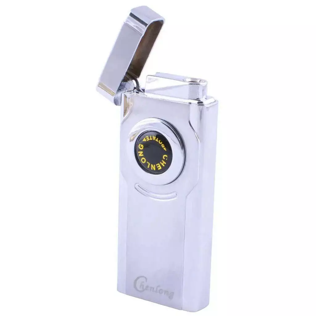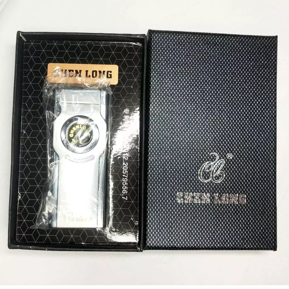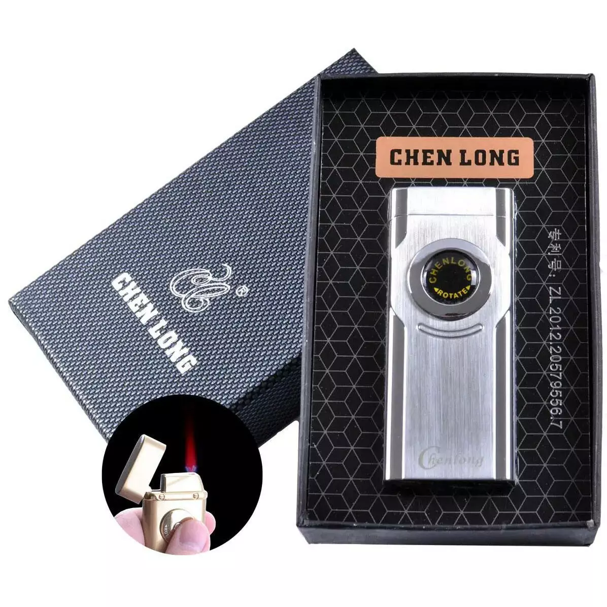 Турбо зажигалка CHEN LONG в подарочной упаковке, включается поворотом колесика. Цвет: серебряный