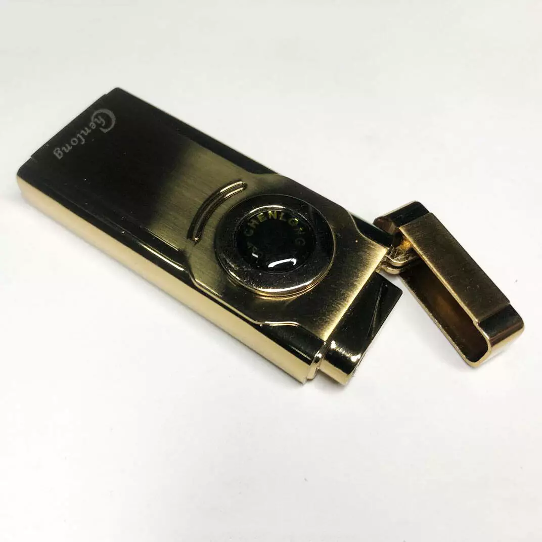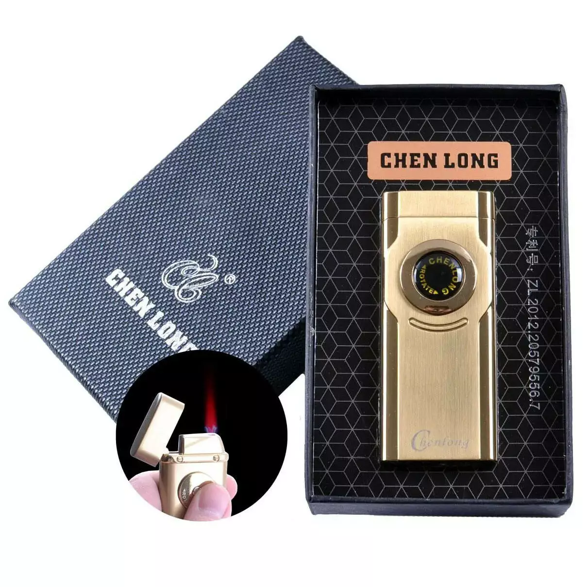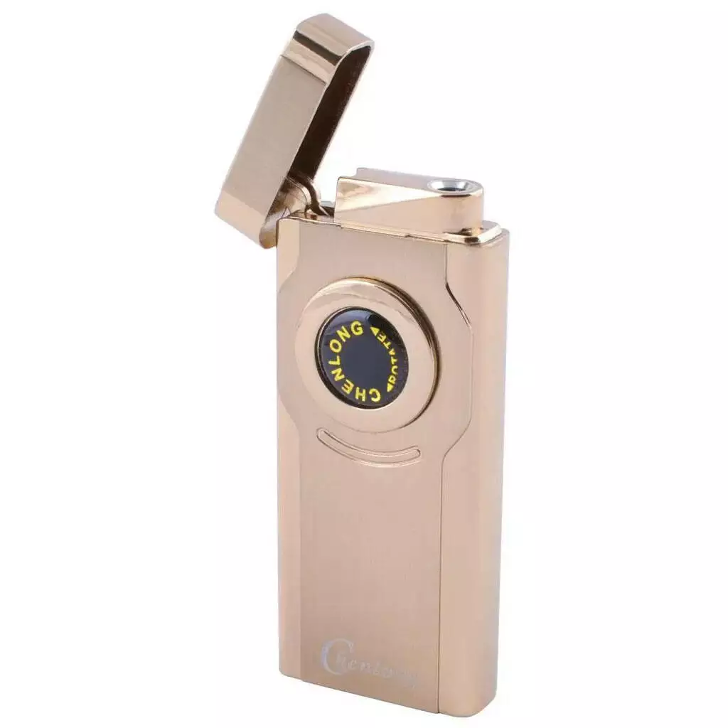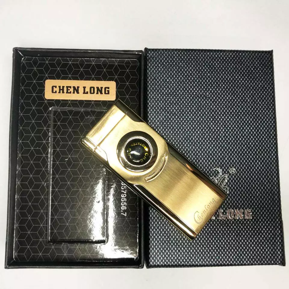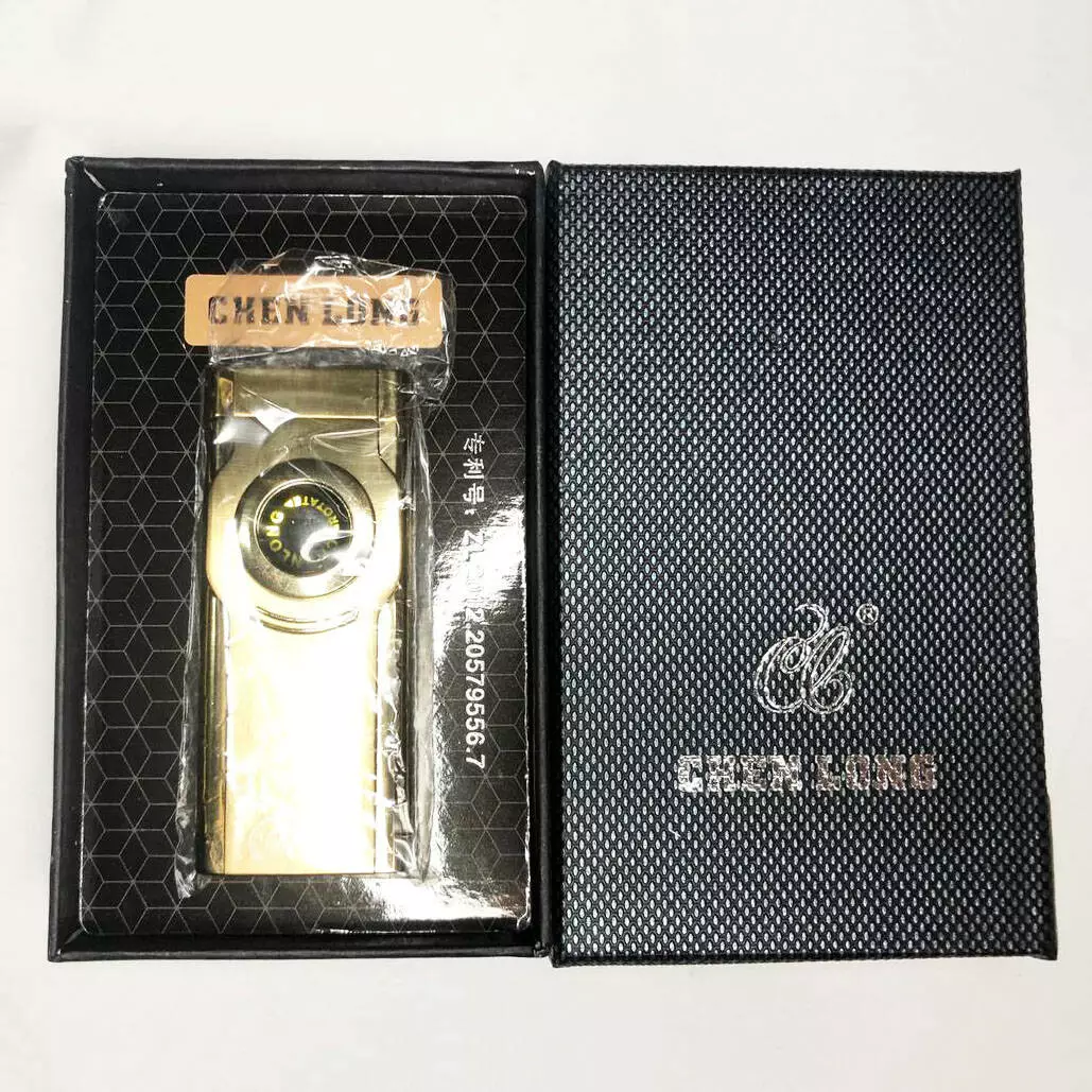 Турбо зажигалка CHEN LONG в подарочной упаковке, включается поворотом колесика. Цвет: золотой