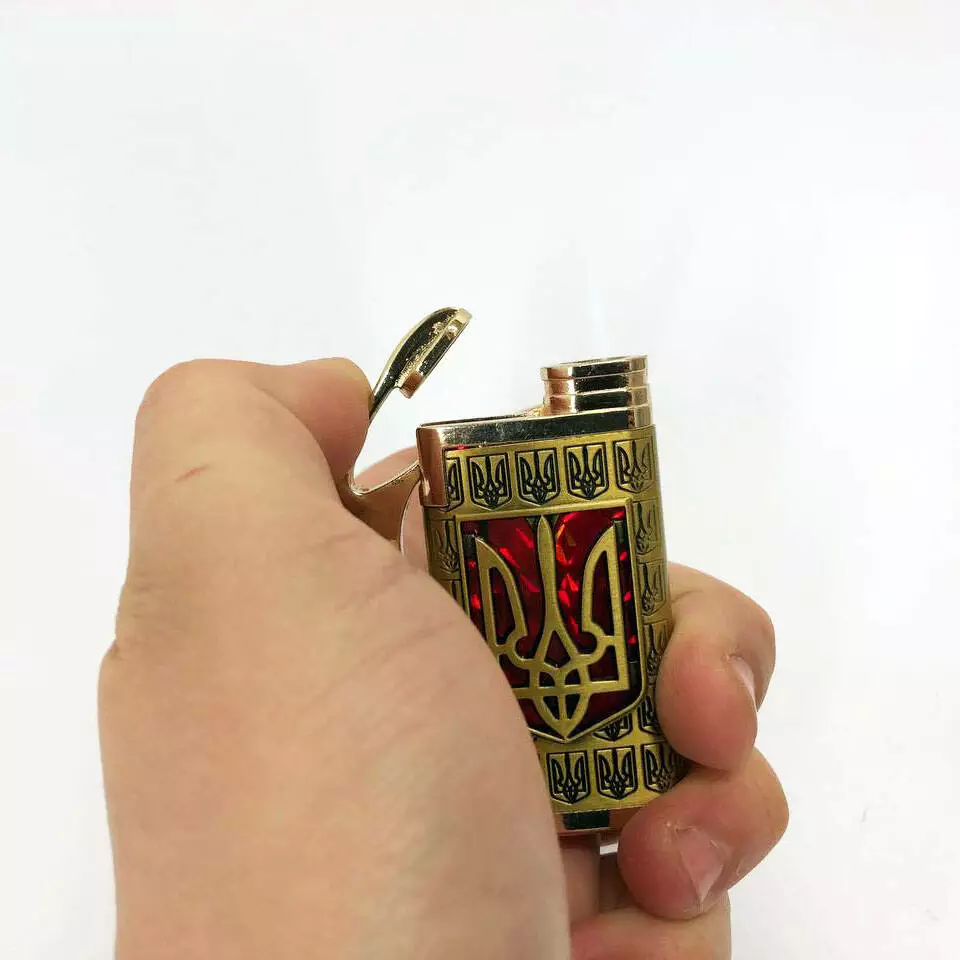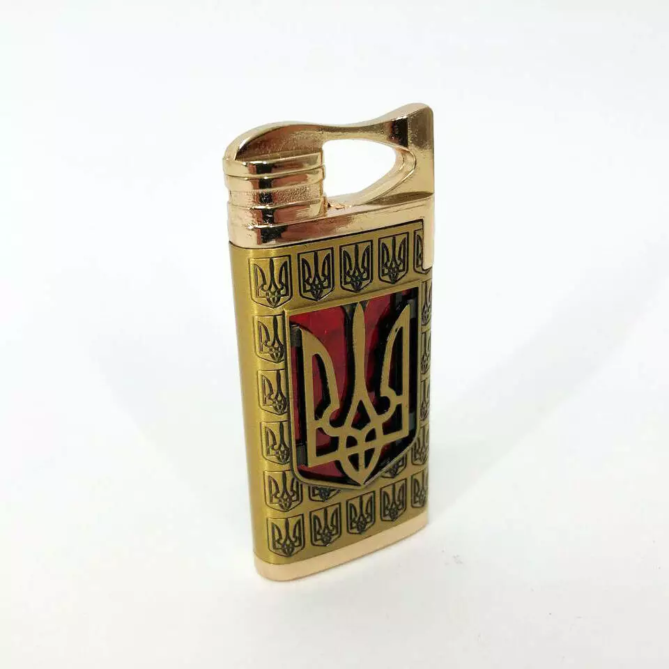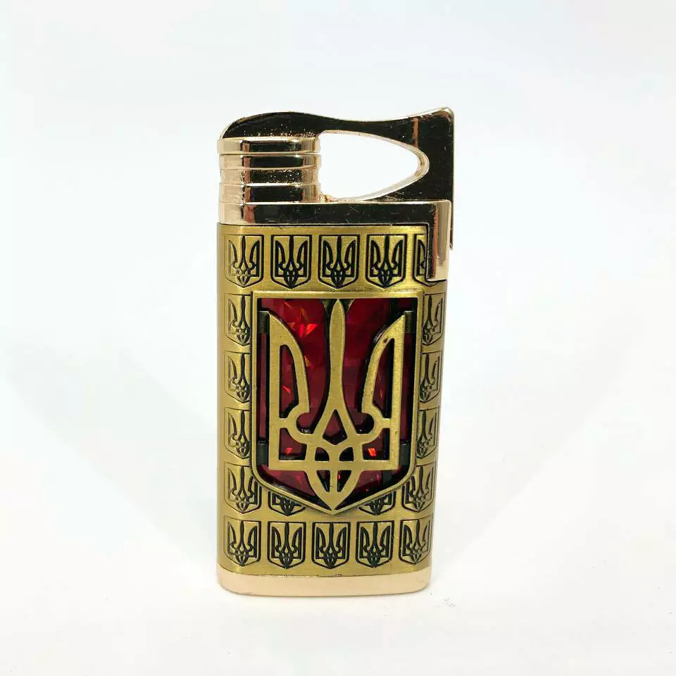 Турбо зажигалка Герб Украины на КРАСНОМ фоне, ветрозащитная зажигалка, подарочные зажигалки