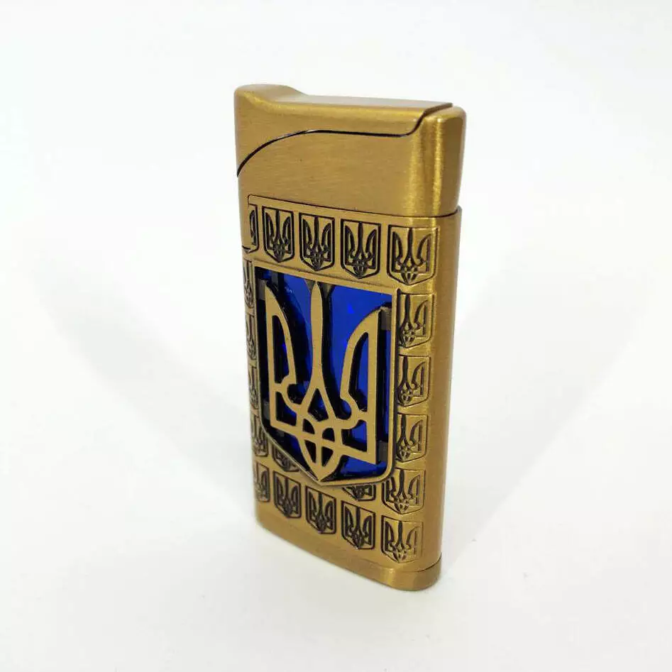 Турбо зажигалка Герб Украины на СИНЕМ фоне, зажигалка подарочная сувенирная 319