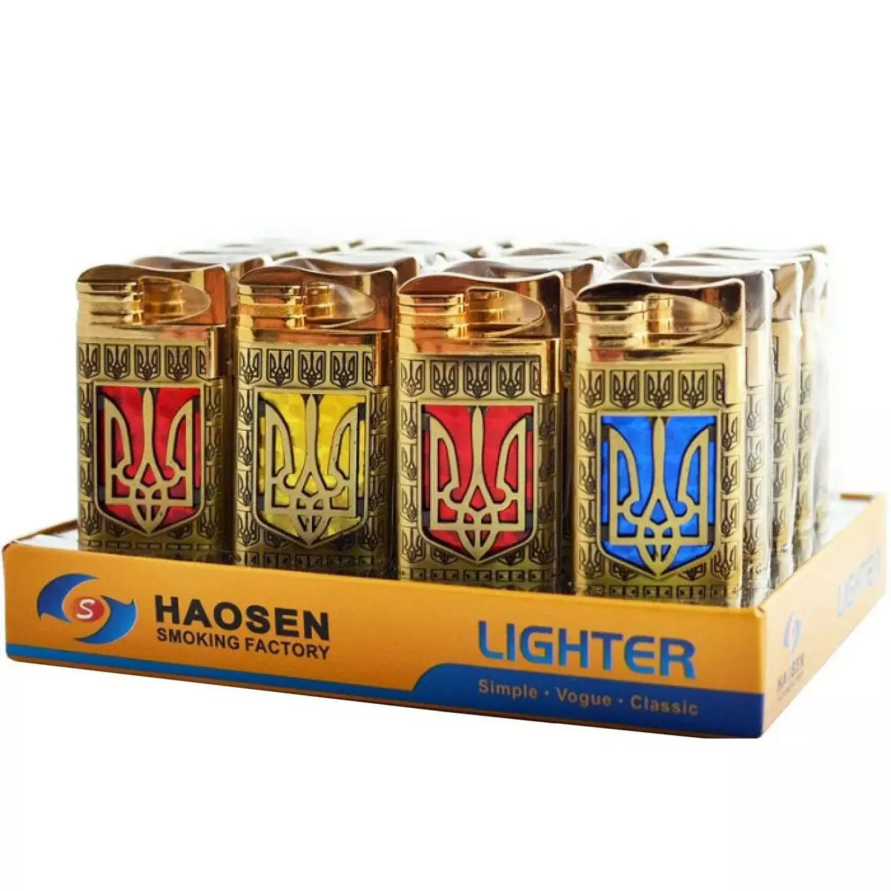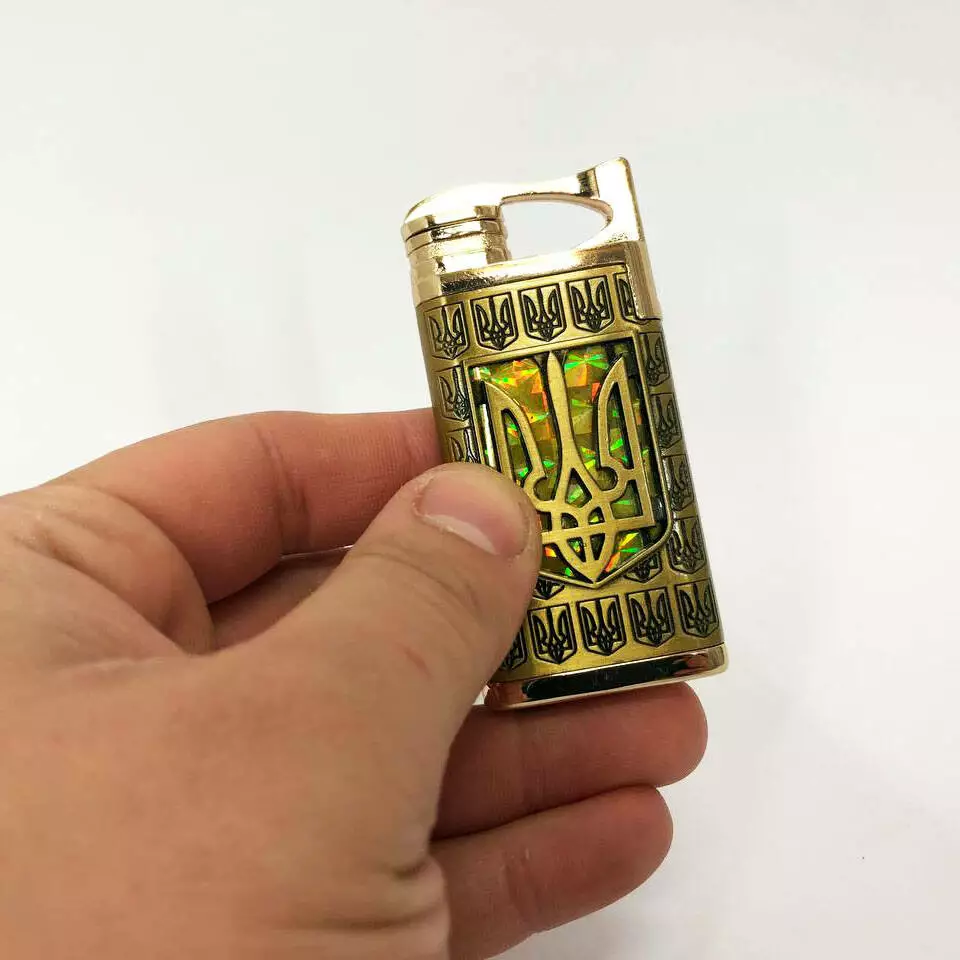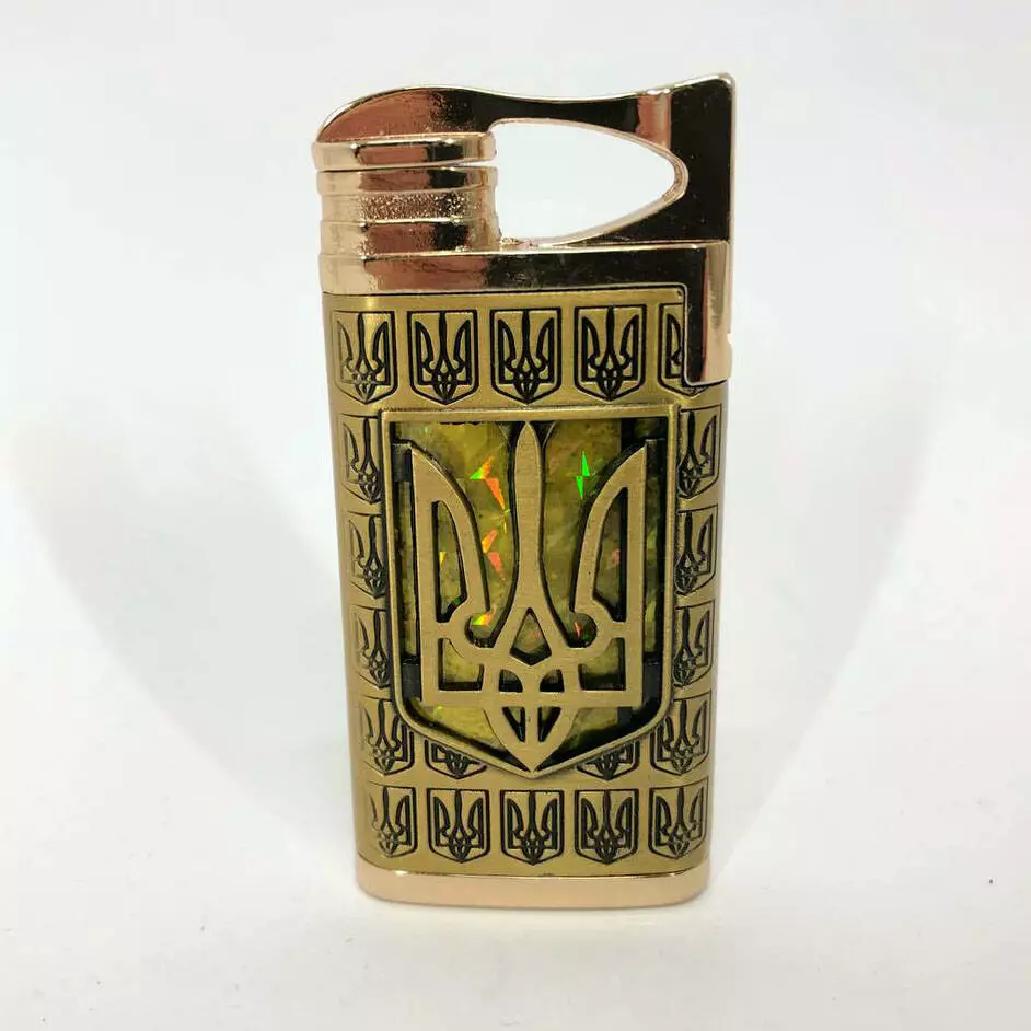 Турбо зажигалка Герб Украины на ЖЕЛТОМ фоне, зажигалка подарочная сувенирная
