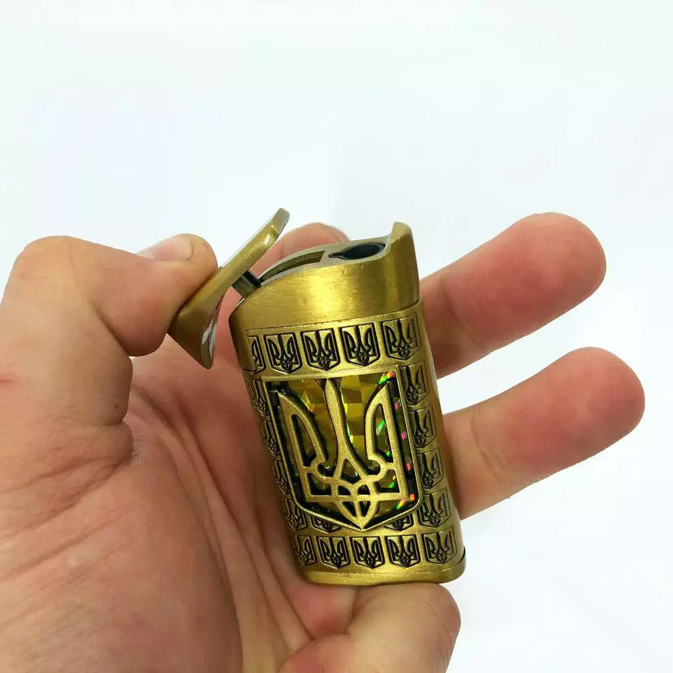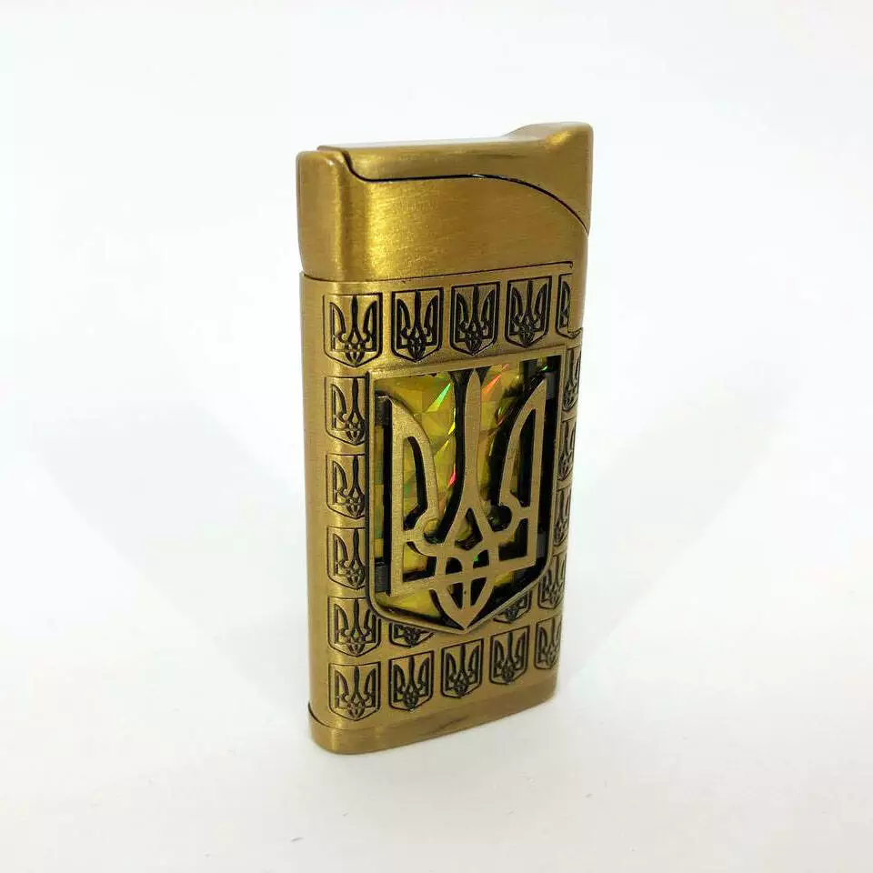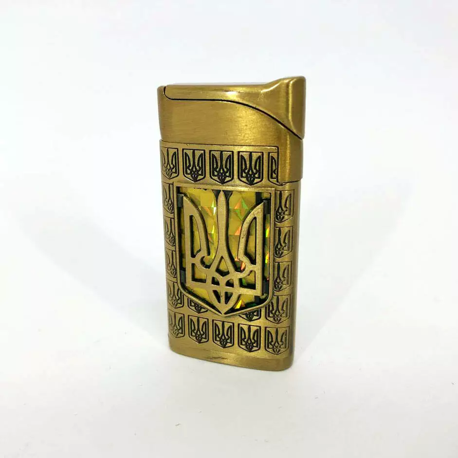 Турбо зажигалка Герб Украины на ЖЕЛТОМ фоне, зажигалка подарочная сувенирная 319