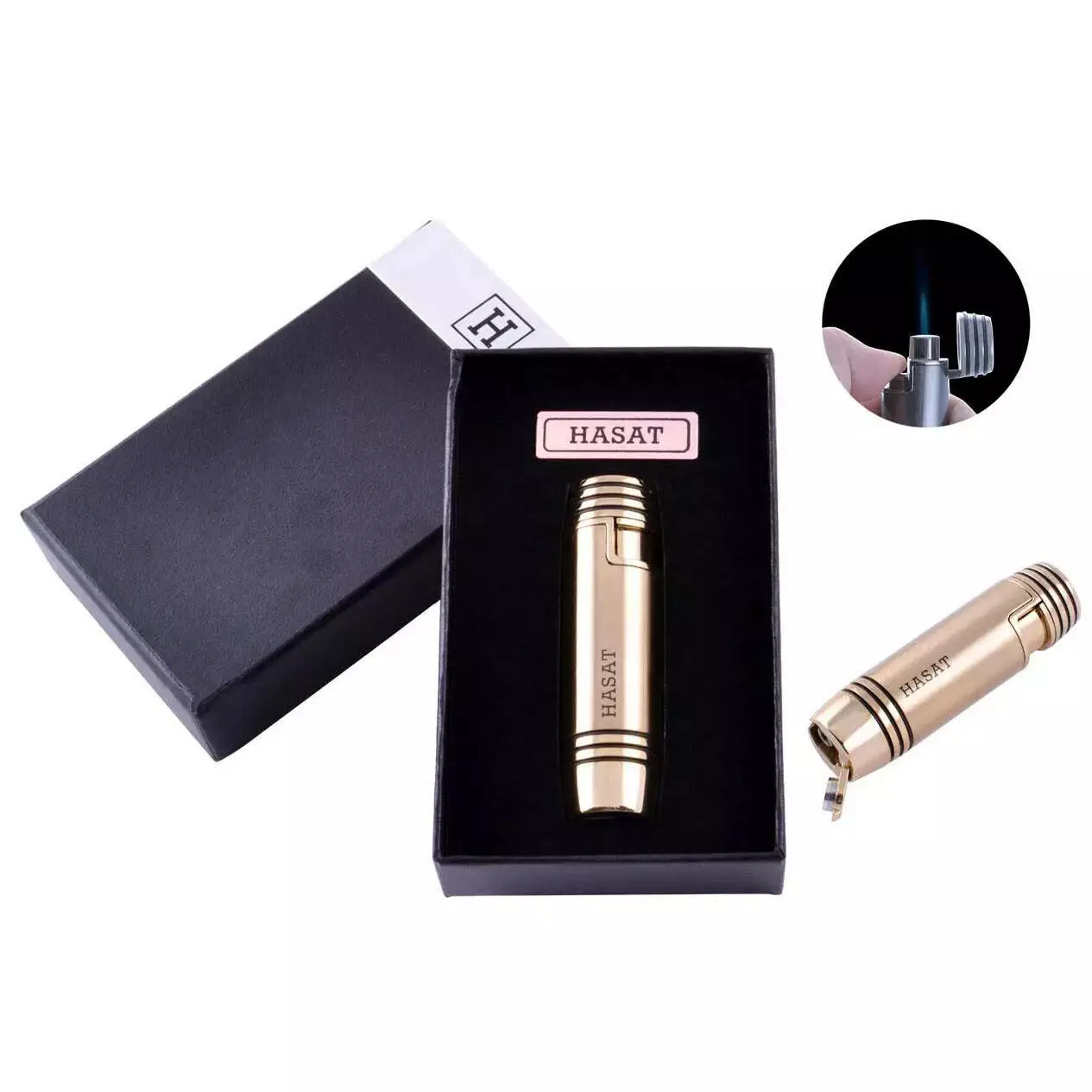 Турбо-зажигалка с пробойником для сигар в подарочной коробке HASAT 56659, зажигалки газовые ТУРБО