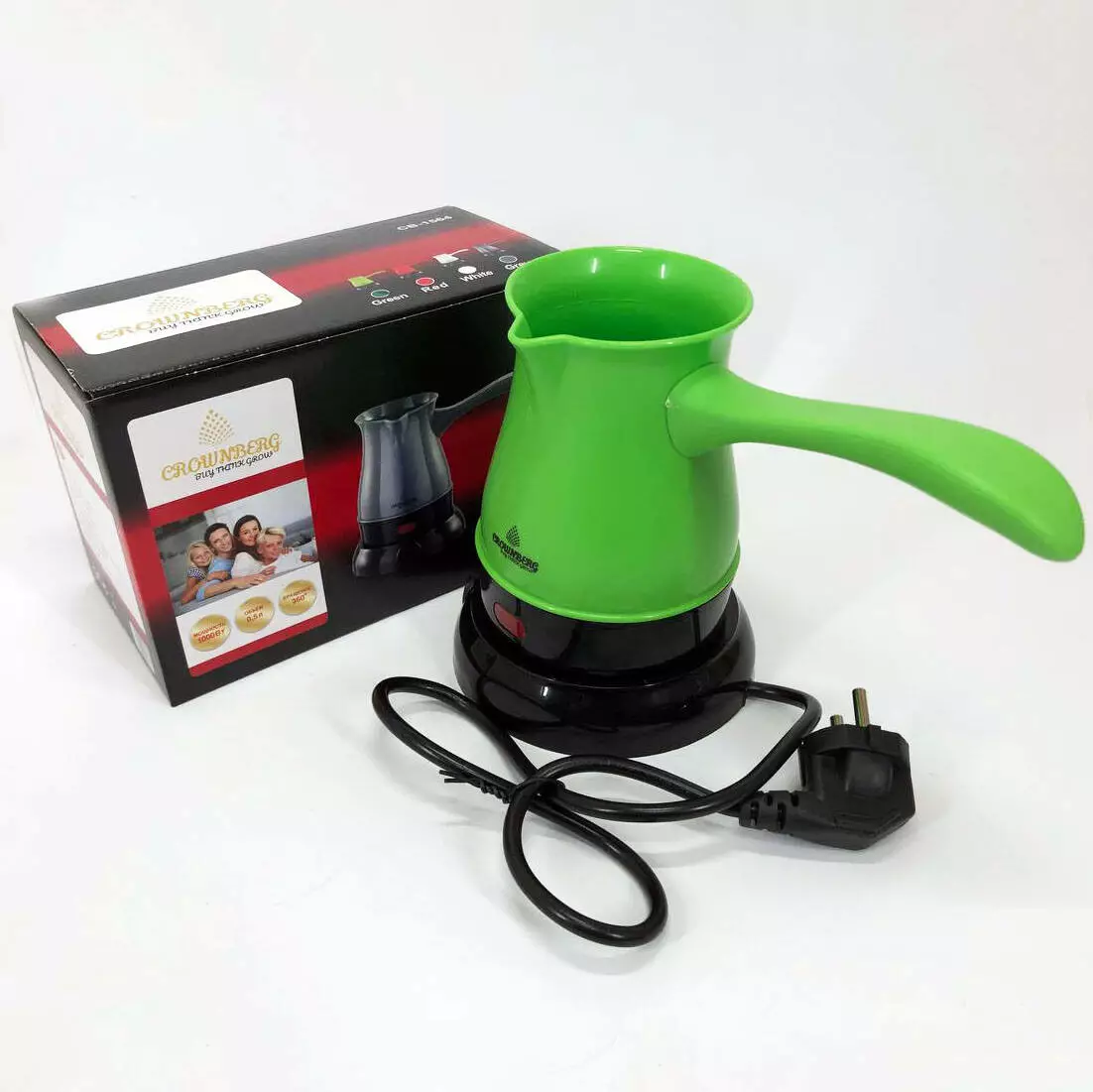 Турка электрическая кофеварка Crownberg CB-1564, Электрическая турка 0.5 л, Електро турка. Цвет: зеленый