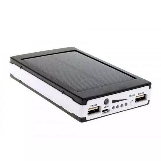 Неоценимую помощь данное устройство окажет на рыбалке, в походе, во всех случаях, когда нет возможности произвести зарядку штатным способом. Подзарядку можно производить в любом месте под падающими солнечными лучами. В режиме резервного аккумулятора Вы можете накопить заряд от сети, а после подзарядить плеер или мобильный телефон. В комплекте с зарядным устройством поставляются кабель зарядки USB-microUSB. На портативном зарядном устройстве имеется два разъема USB для зарядки техники и разъем miniUSB для зарядки самого Power Bank.