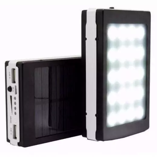 Solar Charger 40000 mAh Power Bank – устройство, которое соединило в себе все преимущества компактных солнечных панелей, универсальных внешних аккумуляторов и LED фонарей. Корпус Power Bank 40000 mAh выполнен из прочного метала, также прибор обладает целым рядом систем защиты, которые предотвращают короткое замыкание, избыточный уровень заряда, полный и самопроизвольный разряд, а также перегрев. Фонарик имеет 20 LED диодов, которые обеспечивают яркий свет. Наличие трех режимов освещения полная яркость, 50% яркости позволят выбрать самый оптимальный, а режим SOS подать сигнал.