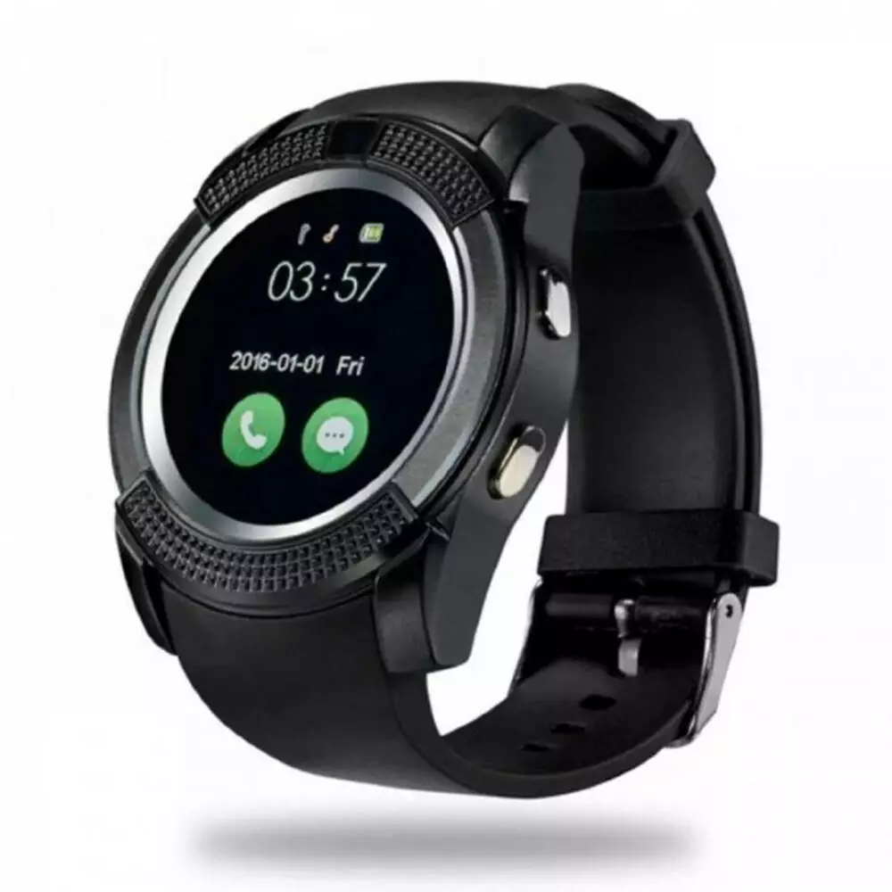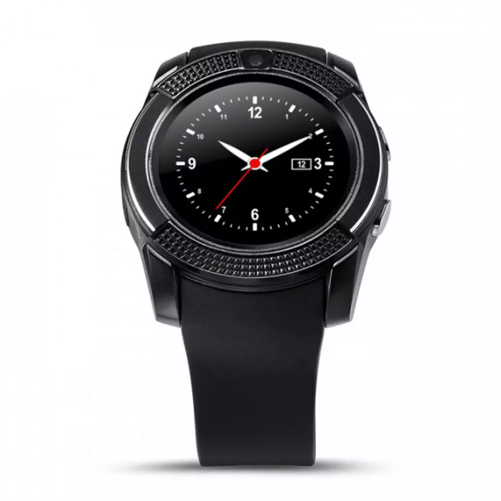 Умные часы V8 это гаджет, который наделён не только типичными для «умных» часов функциями (отображение времени, дублирование уведомлений, измерение параметров физической активности и мониторинг сна), но и возможностью совершать звонки, а также фотографировать (есть камера с разрешением 1.3 МП). Присутствует возможность вставить накопитель стандарта microSD для расширения скромных объёмов внутренней памяти (32 МБ). Носимый гаджет совместим как с мобильными телефонами под управлением Android, так и с «яблочными» смартфонами. Корпус часов является металлическим, а материалом для съёмных ремешков модели служит резина.