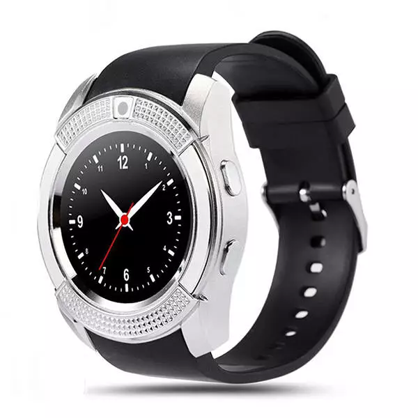 Умные часы V8 это гаджет, который наделён не только типичными для «умных» часов функциями (отображение времени, дублирование уведомлений, измерение параметров физической активности и мониторинг сна), но и возможностью совершать звонки, а также фотографировать (есть камера с разрешением 1.3 МП). Присутствует возможность вставить накопитель стандарта microSD для расширения скромных объёмов внутренней памяти (32 МБ). Носимый гаджет совместим как с мобильными телефонами под управлением Android, так и с «яблочными» смартфонами. Корпус часов является металлическим, а материалом для съёмных ремешков модели служит резина.