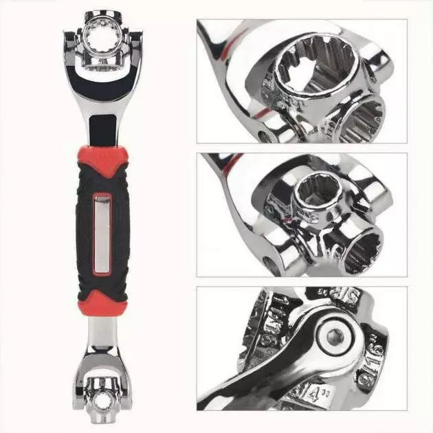 Ключ имеетсверхпрочную стальную конструкцию. Вам не нужны множественные ключи или большиенаборы инструментов, просто поверните головку ключа, чтобы найти правильнуюпосадку. Он изменяется от одного размера до следующего за считанные секунды!