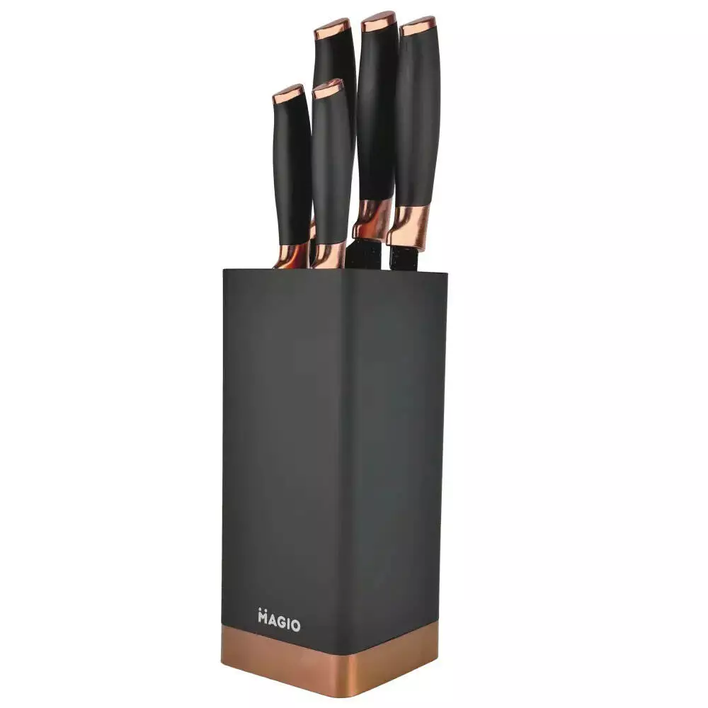Универсальный набор различных ножей на подставке.