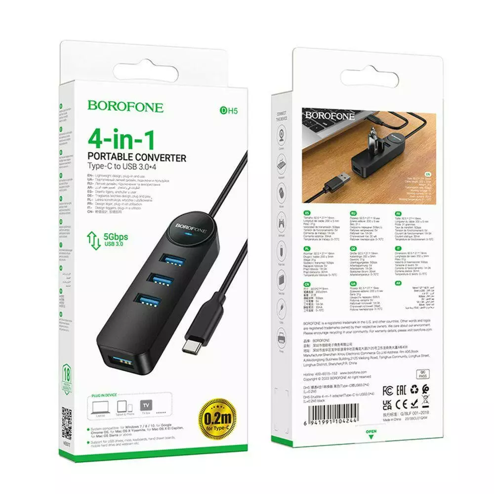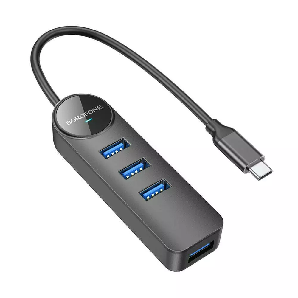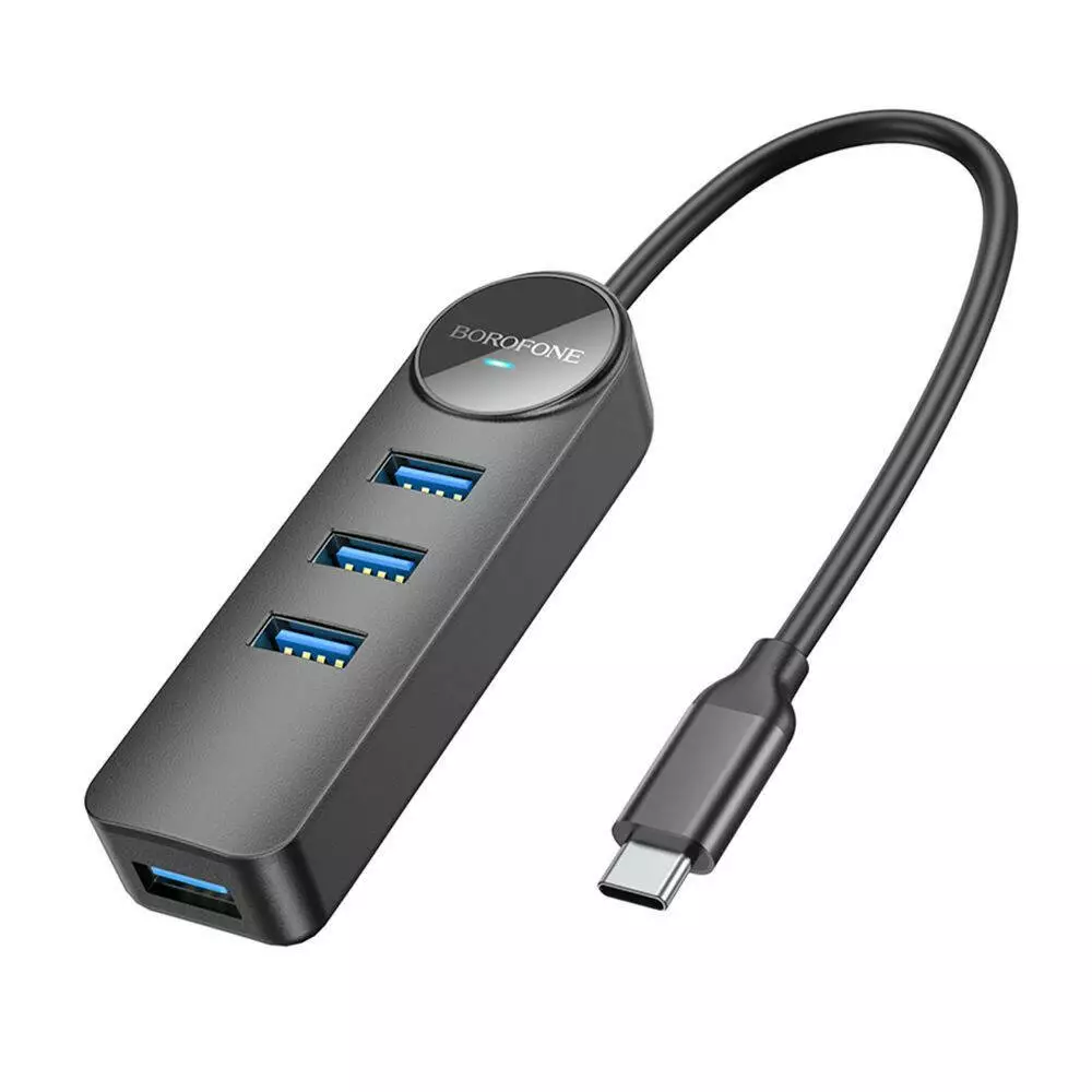 USB-хаб Borofone DH5, 4 in 1, Type-C to 4xUSB 3.0, 0.2m, Black