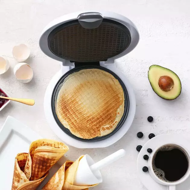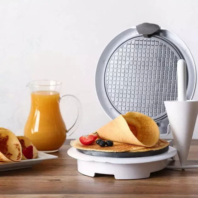 Вафельница безопасна в пользовании, ведь во время приготовления ручка не нагревается.