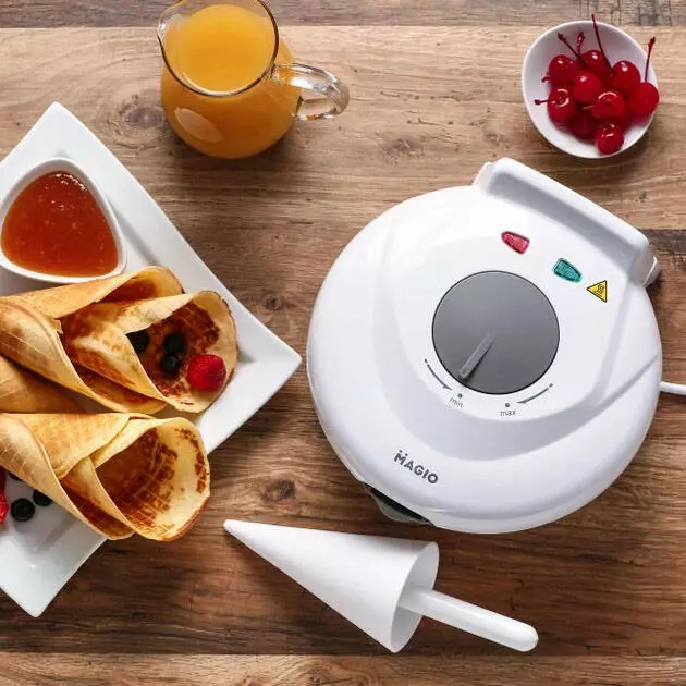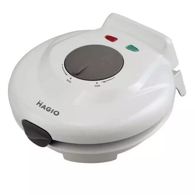 Magio MG 398 – современная и стильная вафельница белого с серым цветом, которая прекрасно впишется в интерьер Вашей кухни.