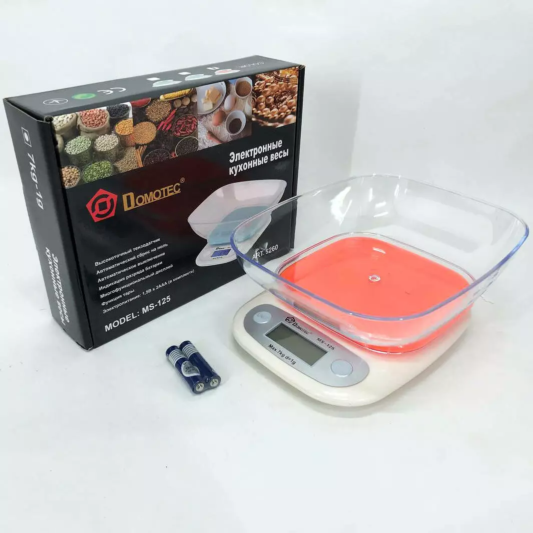 Весы кухонные Domotec MS-125 Plastic сосъемной пластиковой чашей и цифровым дисплеем.