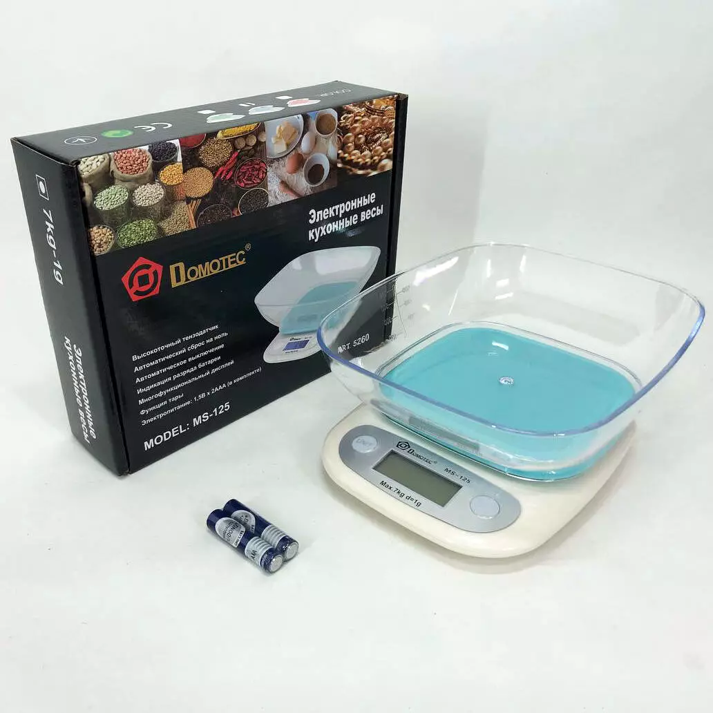 Весы кухонные Domotec MS-125 Plastic сосъемной пластиковой чашей и цифровым дисплеем.