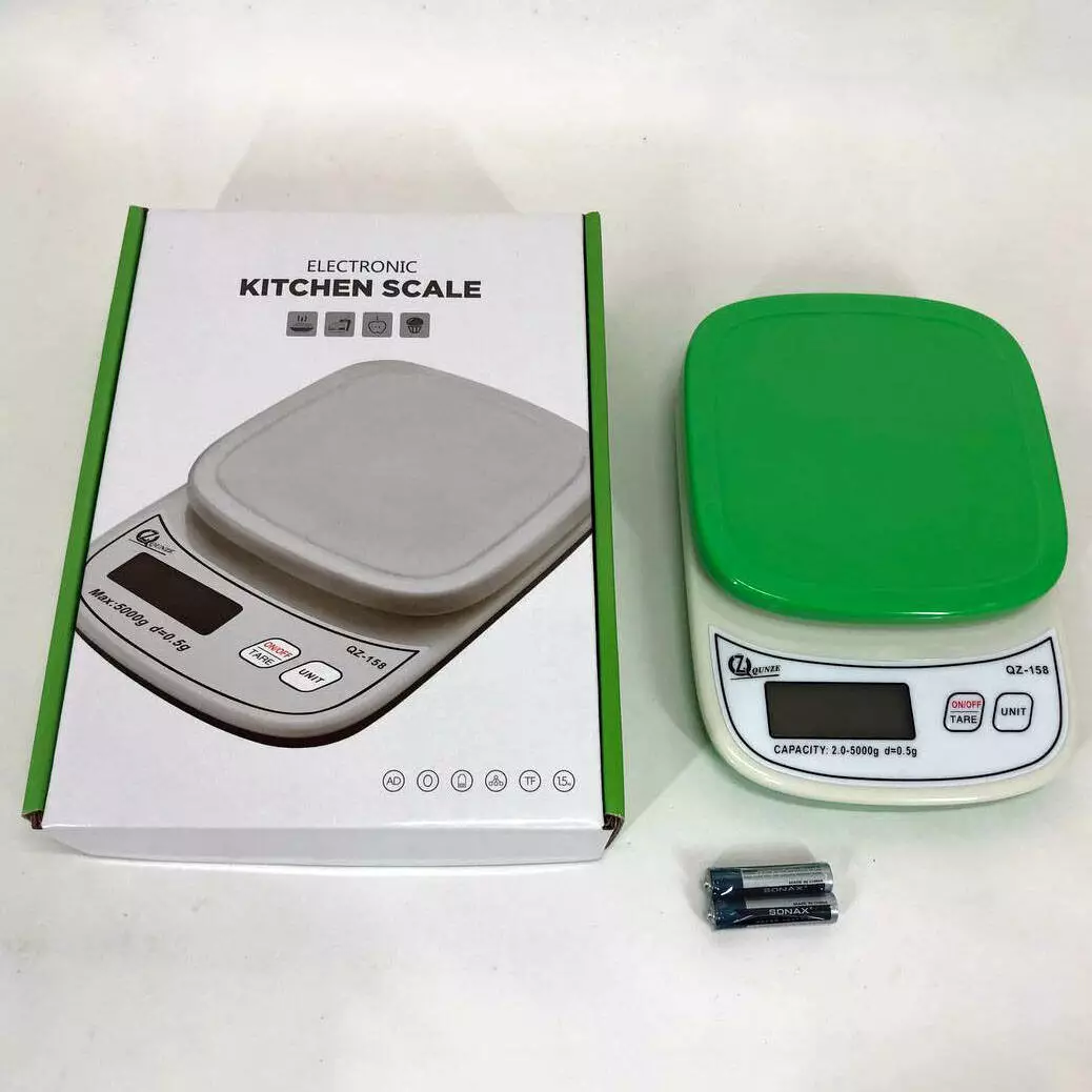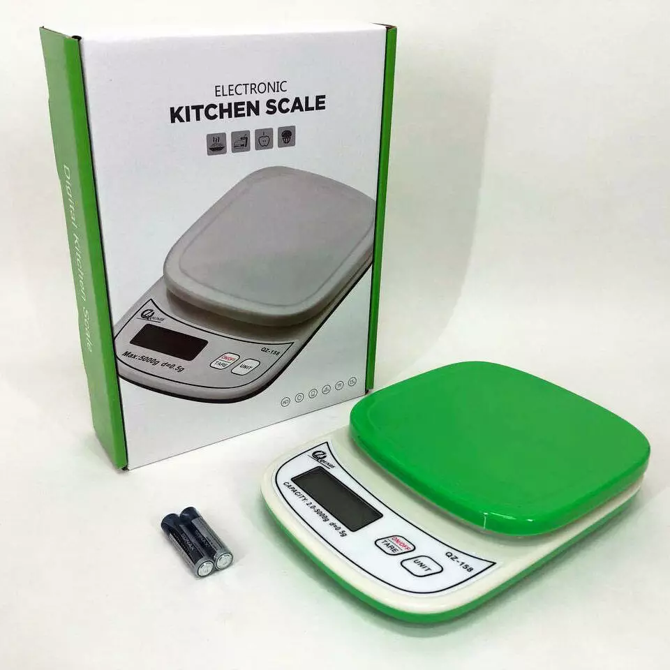 Весы кухонные с плоской платформой QZ-158 5кг, точные кухонные весы. Цвет: зеленый