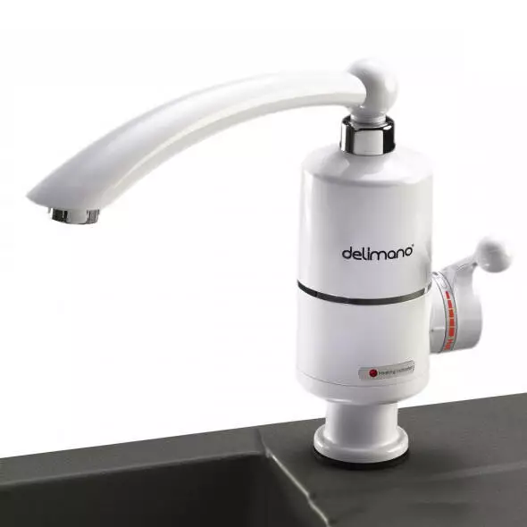 Водонагреватель Delimano — это специальная насадка на кран, что в течении нескольких секунд нагревает воду до горячего состояния. Такой мгновенный нагрев воды позволяет не мучиться с нагревом воды посредством бойлера или кипятильника. Также это позволяет хорошо сэкономить на горячей воде, поскольку при мгновенном нагреве не происходит больших потерь тепла.