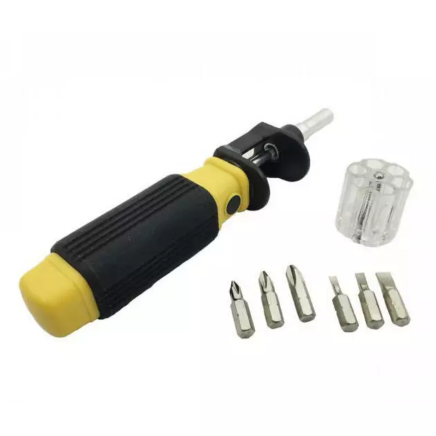 С отверткой поставляется 6 насадок самых популярных форм. Смена оснастки происходит за пару секунд! Для компактного хранения бит предусмотрен отсек на корпусе, теперь детали не потеряются. Благодаря единому корпусу вы экономите место в мастерской и время на поиск «той самой» отвертки. Ручка покрыта нескользящим материалом, а биты намагничены для удобства работы. В строительном магазине вы сможете докупить другие биты, если вам нужен специфический инструмент. Любому мужчине будет гораздо проще прикрутить полку или повесить картину, если под рукой будет компактный и универсальный инструмент, вместо огромного ящика с множеством предметов!