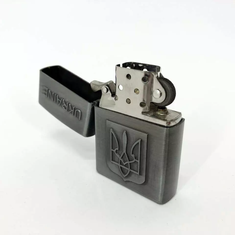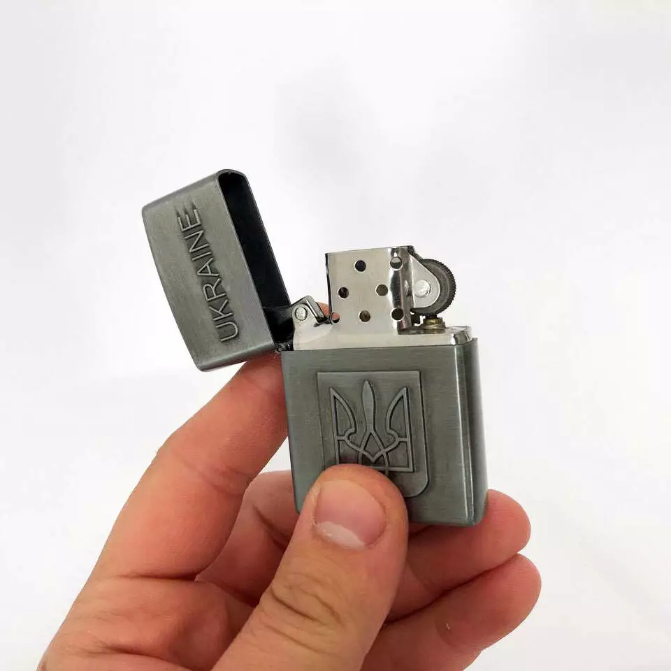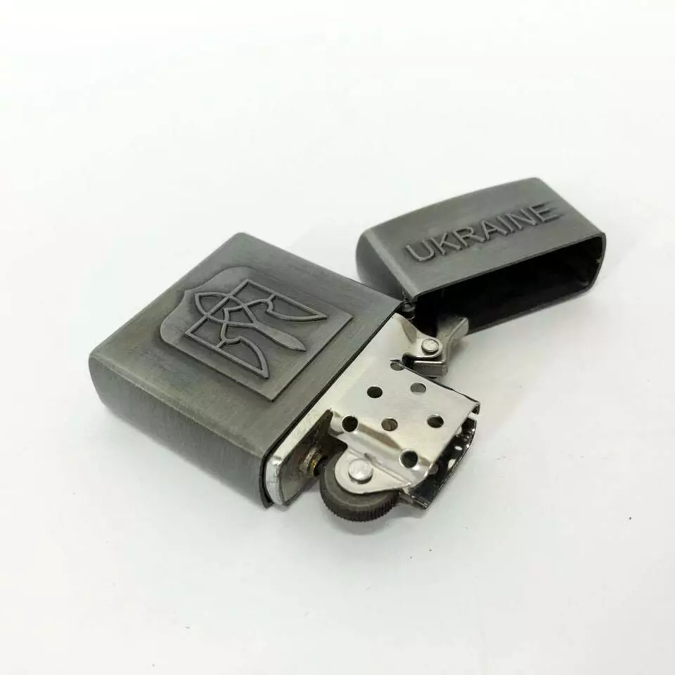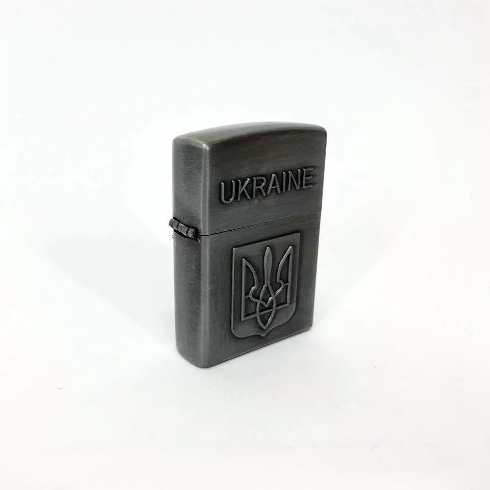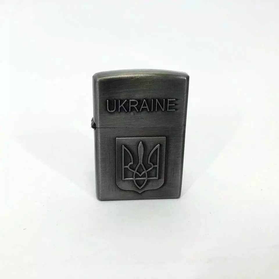 Зажигалка бензиновая герб Украины 4410, зажигалка в подарок, сувенирные зажигалки. Цвет: серебряный