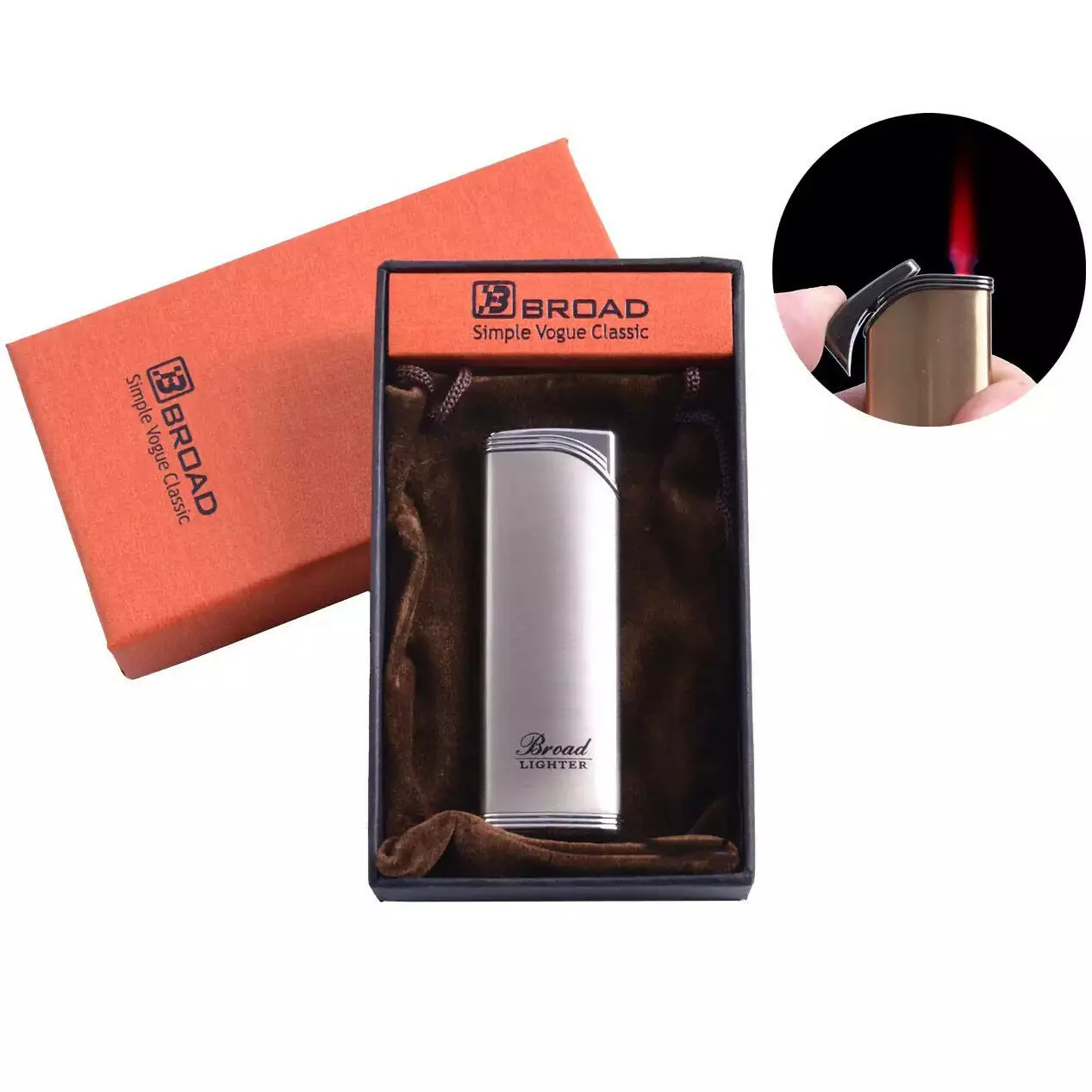 Зажигалка-турбо BROAD в подарочной упаковке 13979, оригинальная зажигалка в подарок. Цвет: серебряный
