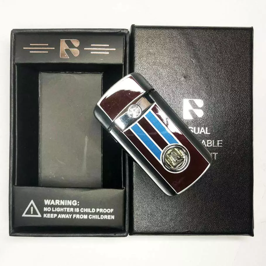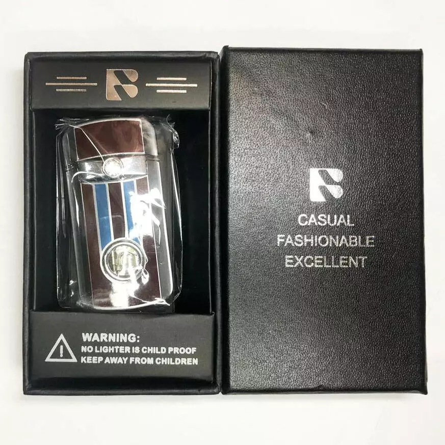 Зажигалка (Турбо) FANG-FANG подарочная, в упаковке серебряная (красный+синий), подарок зажигалка парню
