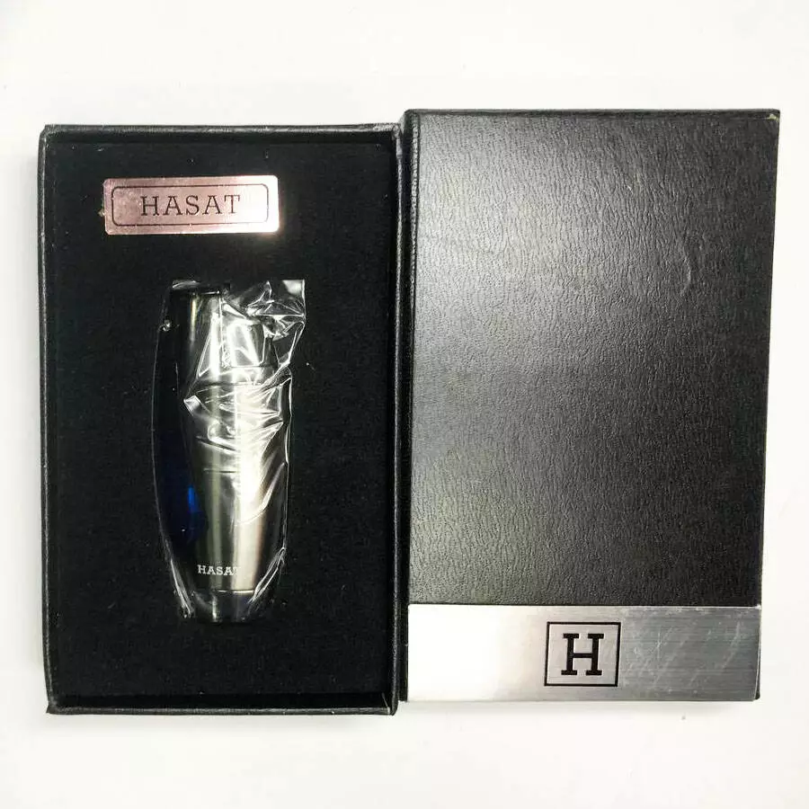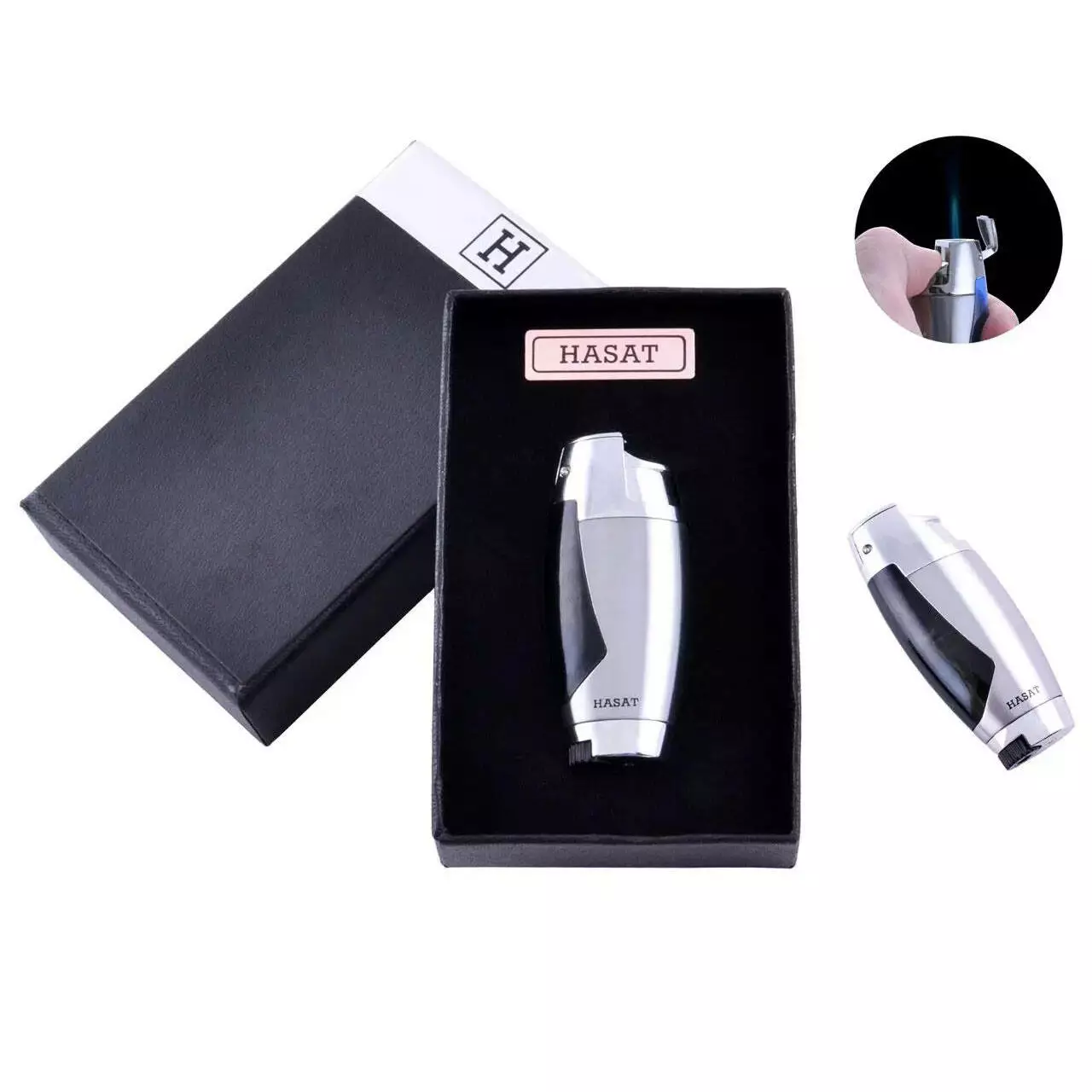 Зажигалка в подарочной коробке HASAT, необычная зажигалка, ветрозащитная зажигалка. Цвет: серебряный