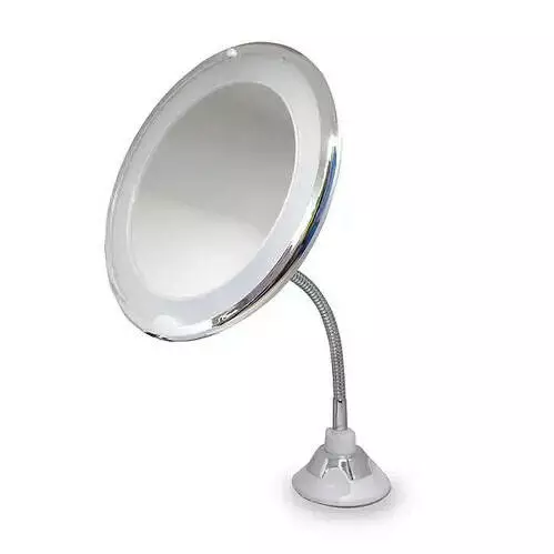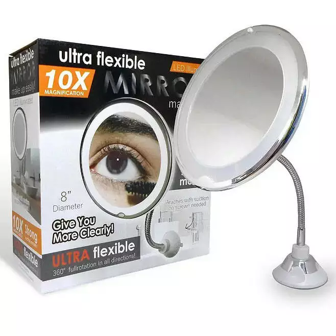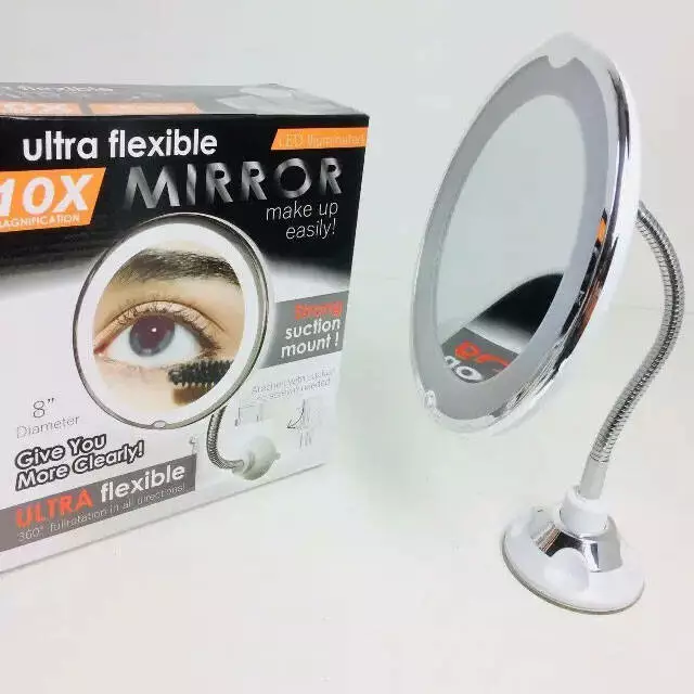 Зеркало косметическое – это круглое 8″ зеркало для макияжа с 10-кратным увеличением м LED- подсветкой, которое крепиться на присоске и вращается в 360 градусов.